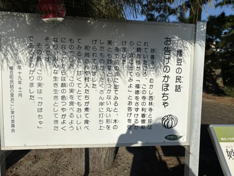 境内には幡豆の民話「お告げのかぼちゃ」という