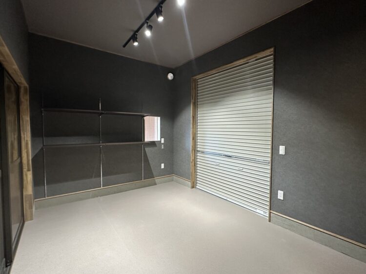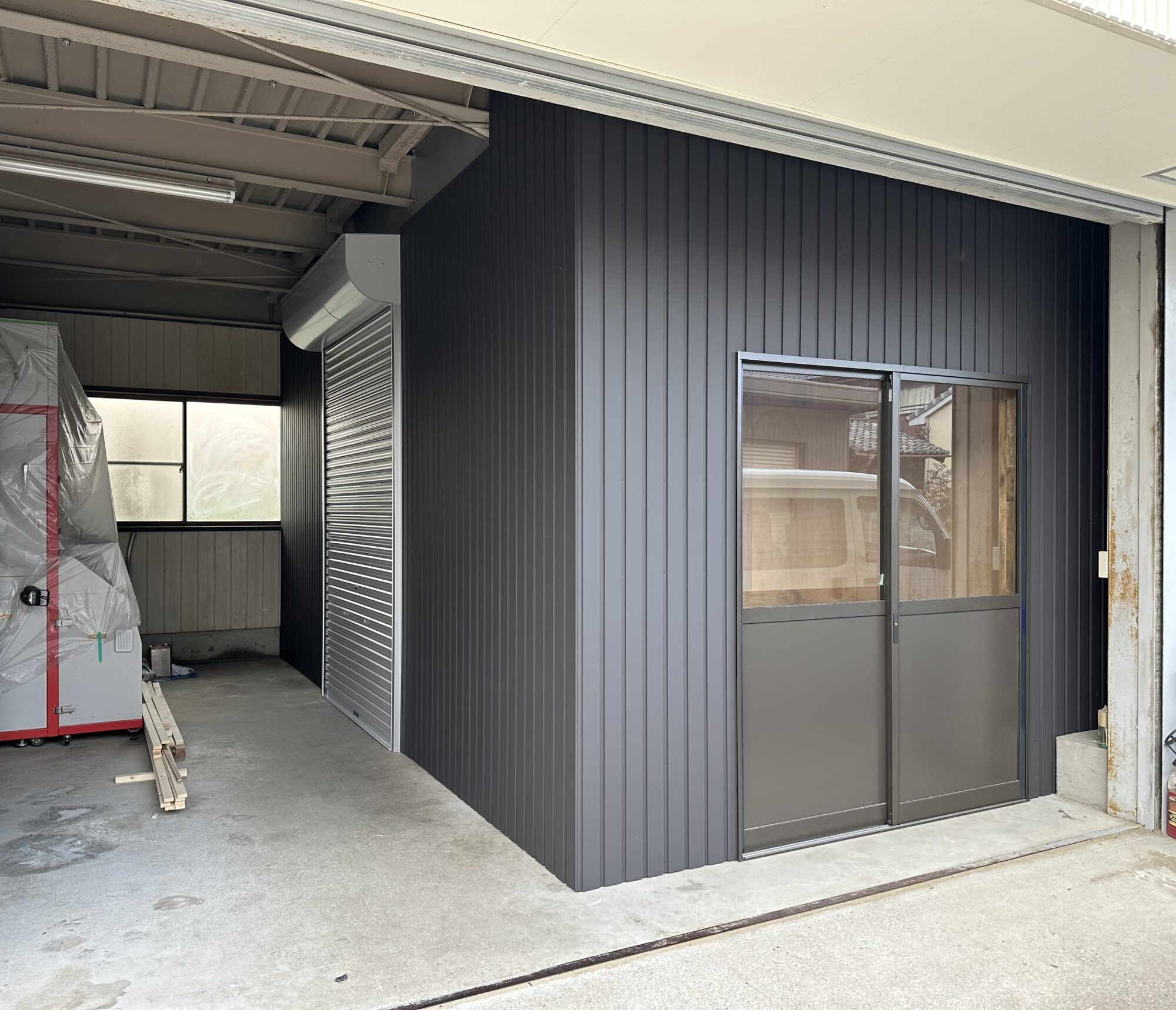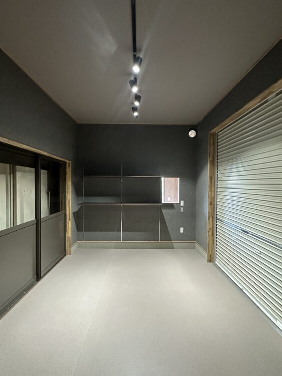 また新設した間仕切り壁はブラックの板金を選んでいただき、サッシやシャッターの色も合わせてご提案させていただきました。