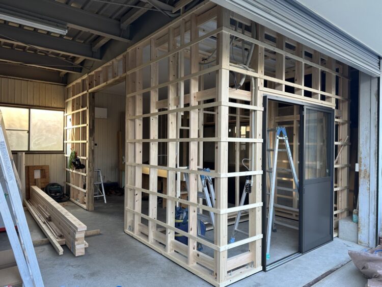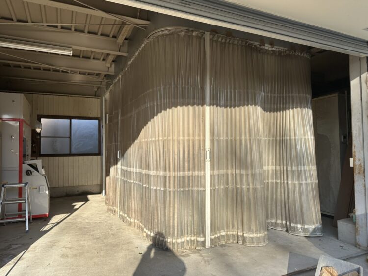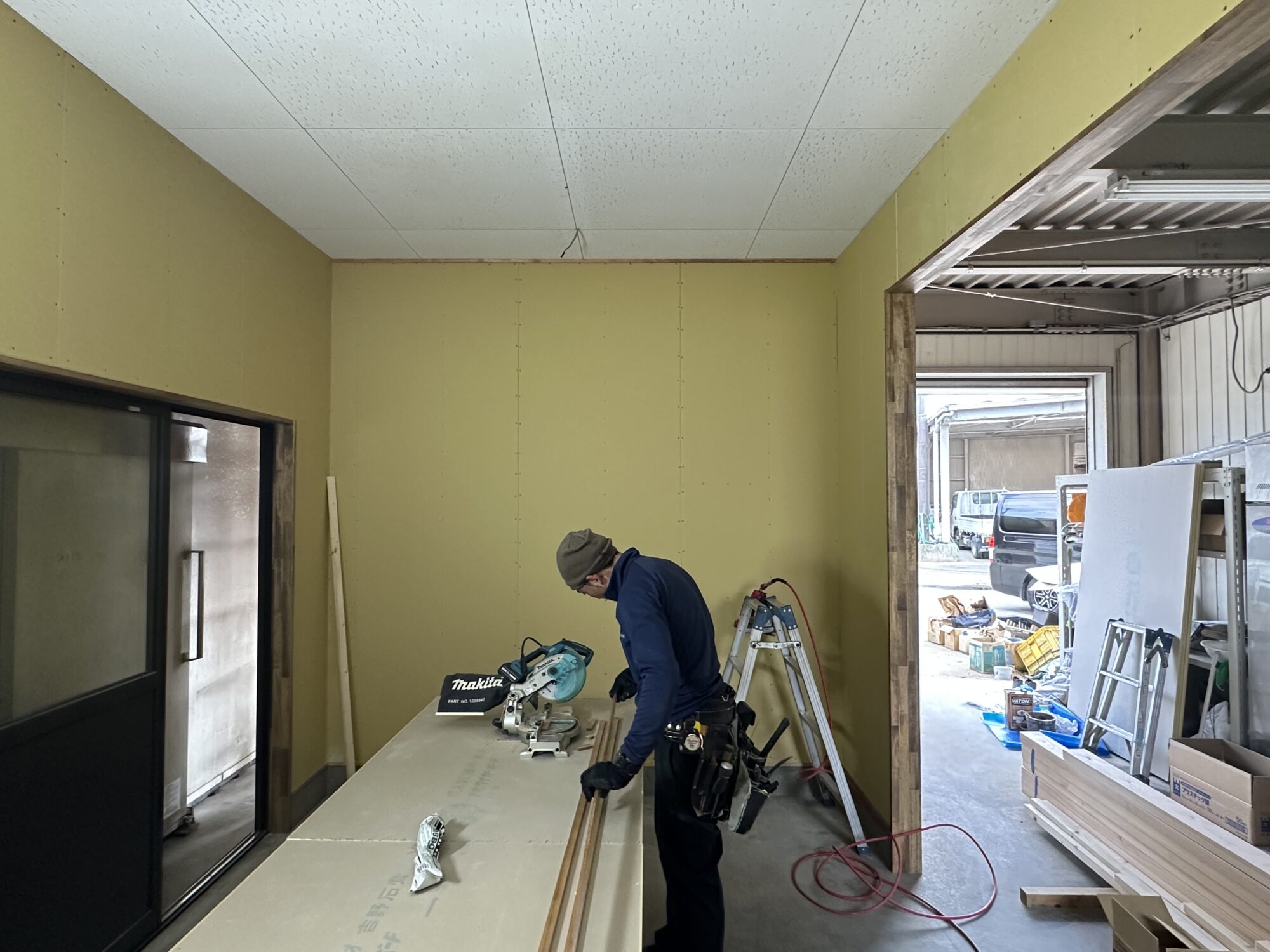 こんにちは。川上俊明です。 今回は、農家さんの倉庫内にある作業スペース の改修工事のお話です。もともとはビニールカーテンで囲った簡易的な 区画。ある程度の仕切りはありましたが、粉塵 対策や衛生面をより高めたいというご相談をい ただきました。 そこで今回、しっかりと壁を新設し、空間をき ちんと間仕切り。外部からのホコリを遮断し、 商品をより安心して扱えるクリーンな環境へと 生まれ変わりました。