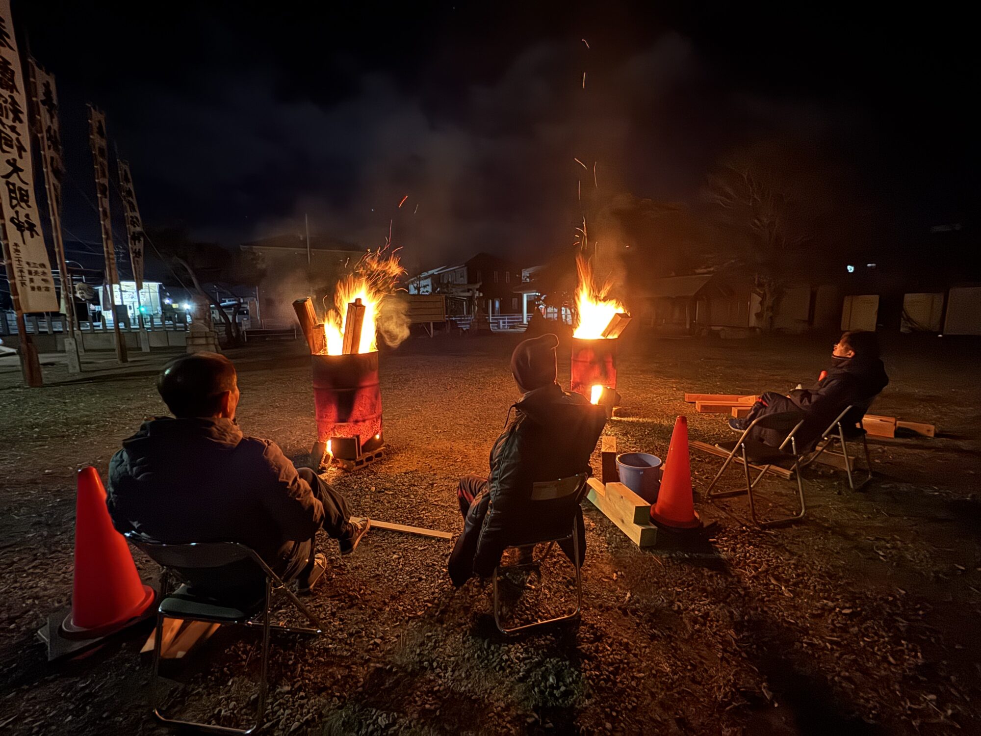 寒さ厳しい年末年始に焚火は参拝者にとって、