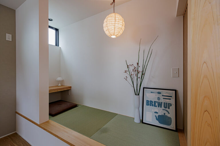 開放的な空間だけでは不十分で、家族の程よい間合いや空間の「余白」となる間も必要だと考えています。プライベートな時間を愉しむ和室や書斎、ワークスペースもご提案しています。