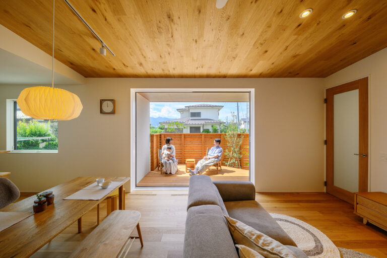 明るく開放的な、外とつながる空間をつくり、家にいながら四季折々の自然を味わえる、心地よい暮らしを提供します。