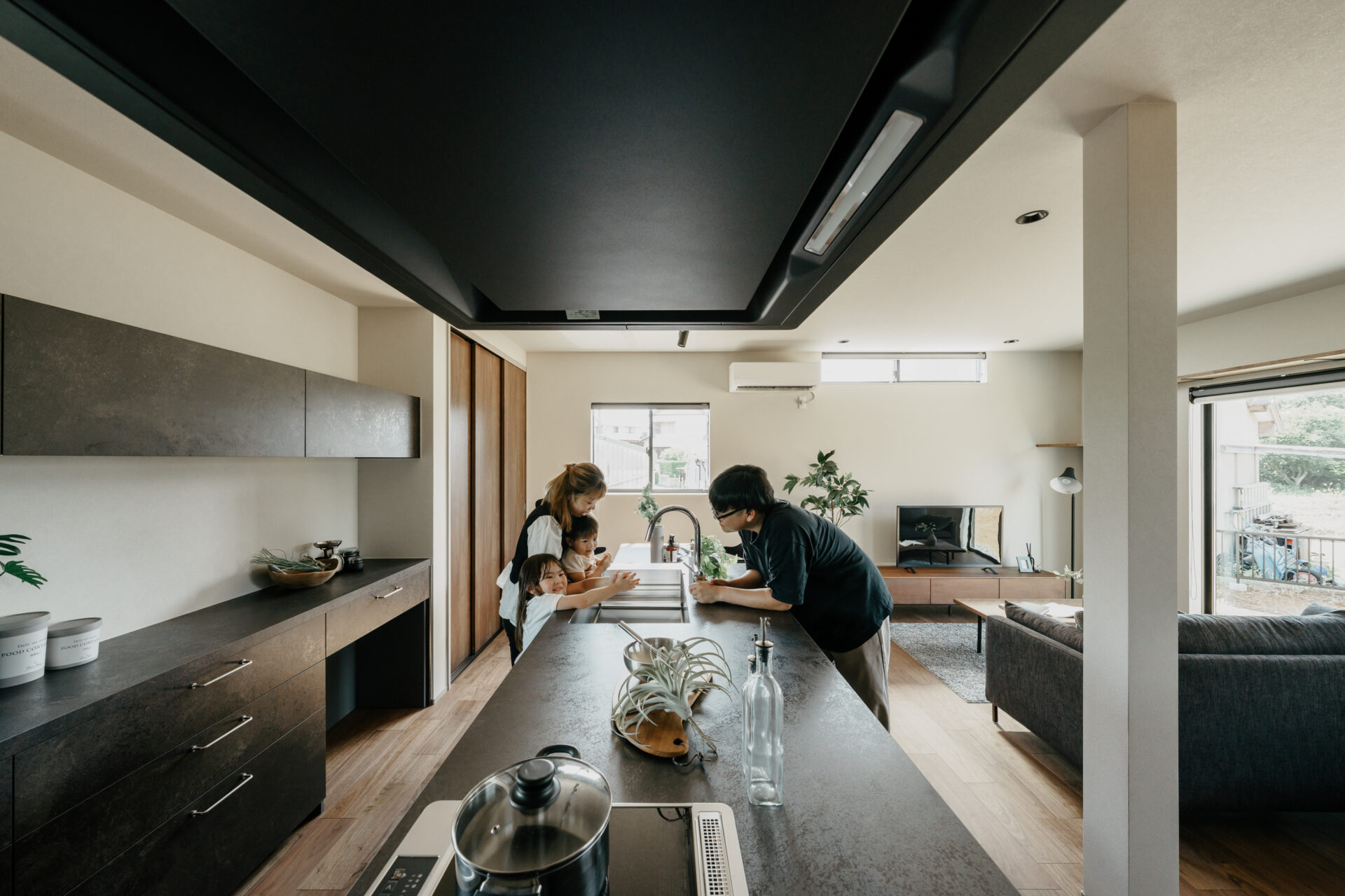 家族の様子を感じられるリビングと対面に設計したキッチン